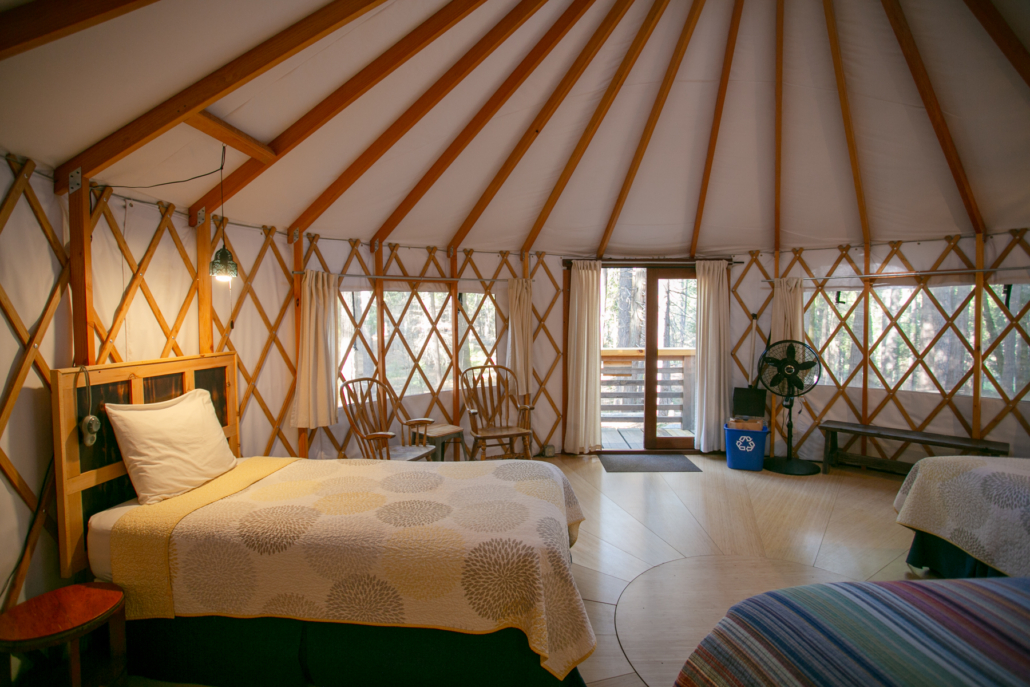 The glamping unit includes a queen and two twin beds for the next camping adventure in comfort. The yurt has a layer of insulation that allows it be rented in the cooler temperatures, we’ve added a space heater and heated mattress pads.